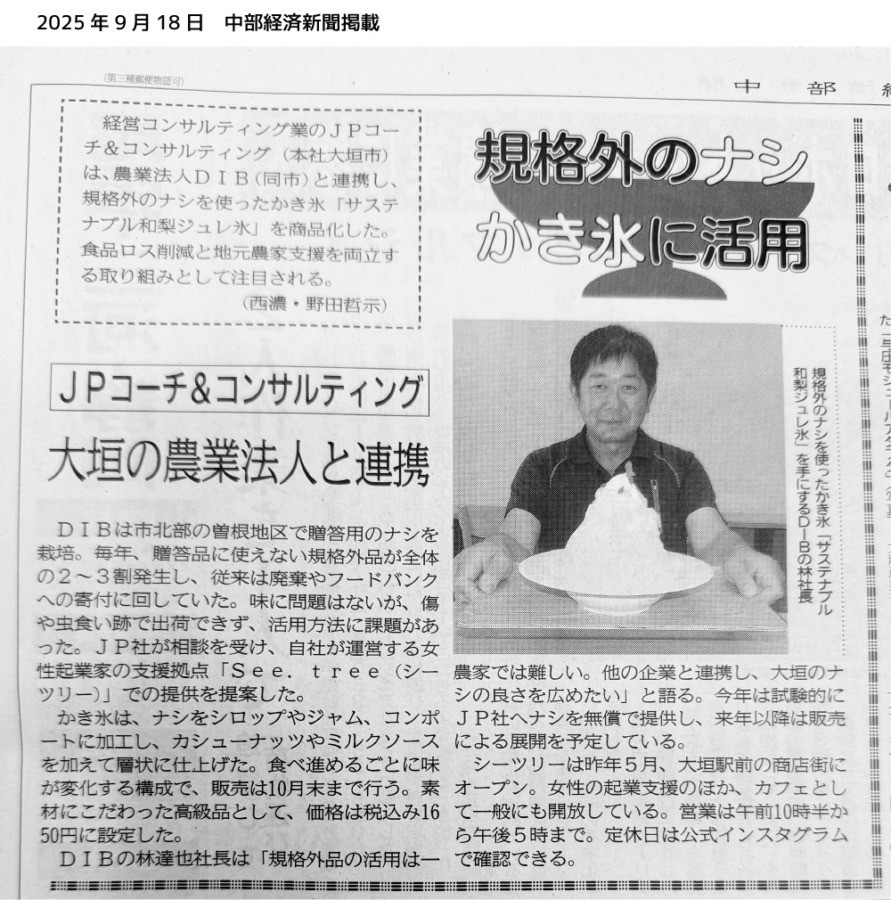 この夏、See tree.カフェで提供を始めた「サステナブル和梨ジュレ氷」が新聞に取り上げられました。