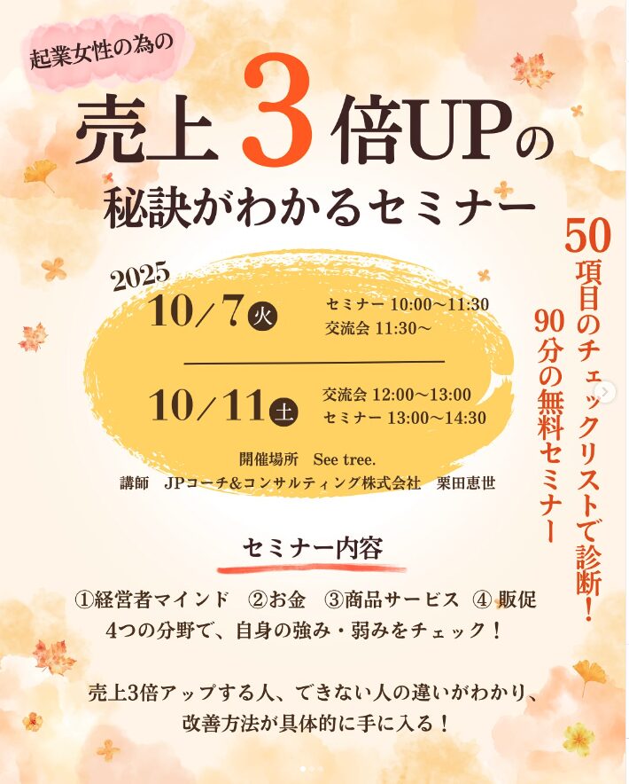 【売上3倍UPの秘訣がわかるセミナー】を大好評につき再開催🙌